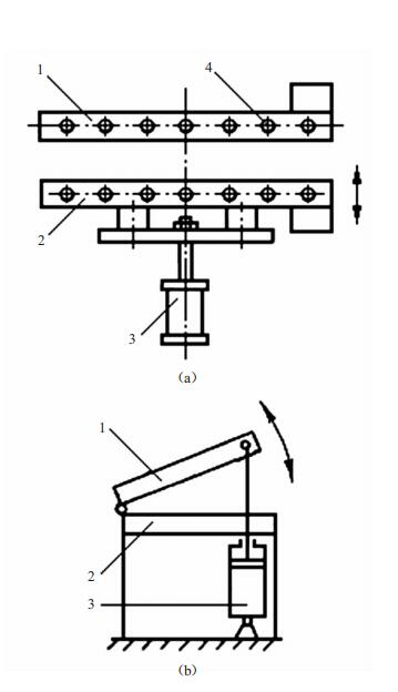 The schematic diagram of the heating device structure of the flat-plate and roller-plate blister packaging machine is the upper plate direct-acting type, and Figure 2(b) is the upper plate turning type. The movement of the heating plate is driven by the cylinder. The heating plate is generally stationary during work, and there is a gap of 0.5 to 0.8 mm between the two plates. The plastic film passes through the gap, which can avoid heat loss and ensure good molding.