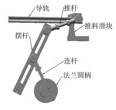 cartoning machine , and use SolidWorks to establish the assembly model of the pushing mechanism, as shown in the figure. The crank is replaced by a flange plate, fixed on the drive shaft, and rotates with the drive shaft; the connecting rod is formed by connecting a joint bearing and a rod, which is convenient to adjust the length of the connecting rod; there is a symmetrical U-shaped groove in the middle of the pendulum rod to reduce the pendulum The weight of the rod; both ends of the push rod are also connected by joint bearings, which can adjust the length of the push rod and adjust the starting point position of the pushing slider. The guide rail fixing seat and drive shaft are not marked in the figure, only the assembly relationship between the main parts of the mechanism is given.