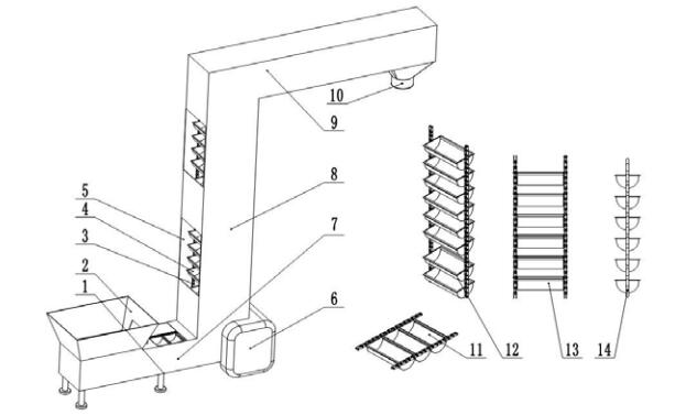 Schematic diagram of the bucket elevator structure of the rotary packing machine