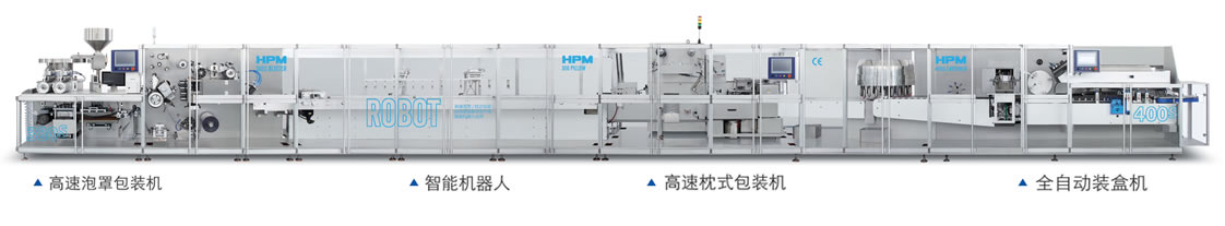 The high-speed blister pillow packaging and automatic cartoning linkage production line is suitable for high-speed aluminum-plastic packaging of medicines, especially capsules, tablets, and sugar-coated tablets. It automatically detects and rejects waste. Intelligent robots automatically queue up and send to the high-speed pillow packaging machine to send the medicine board Side seal, and enter the cartoning machine through the servo rotating suction head. The high-speed automatic cartoning machine loads the medicine board and instructions into the carton and seals the batch number. The whole process of fully automatic packaging can achieve the purpose of reducing space and saving labor, high automation High cleanliness is more in line with GMP requirements.