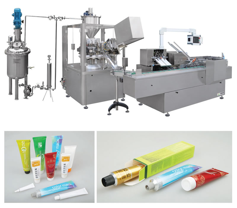 Automatic Tube Filling and Sealing Machine--Cartoning Machine Packing Production Line is a high technical integrative equipment which is successfully developed and designed on the base of years of experiences of developing autom-atization machine。It adopts PLC, human-machine interface operation panel, and it can automatically execute tube supply, make photoelectric register, fill and seal boxes, output finished products, fold instruction Paper, open boxes, feed object into boxes, print batch number (including manufacture date), and seal boxes edge. It also can be equipped with 3-dimensional film packing machine, heat shrink packing machine, case packing machine as a production line which is suitable for large batch production.