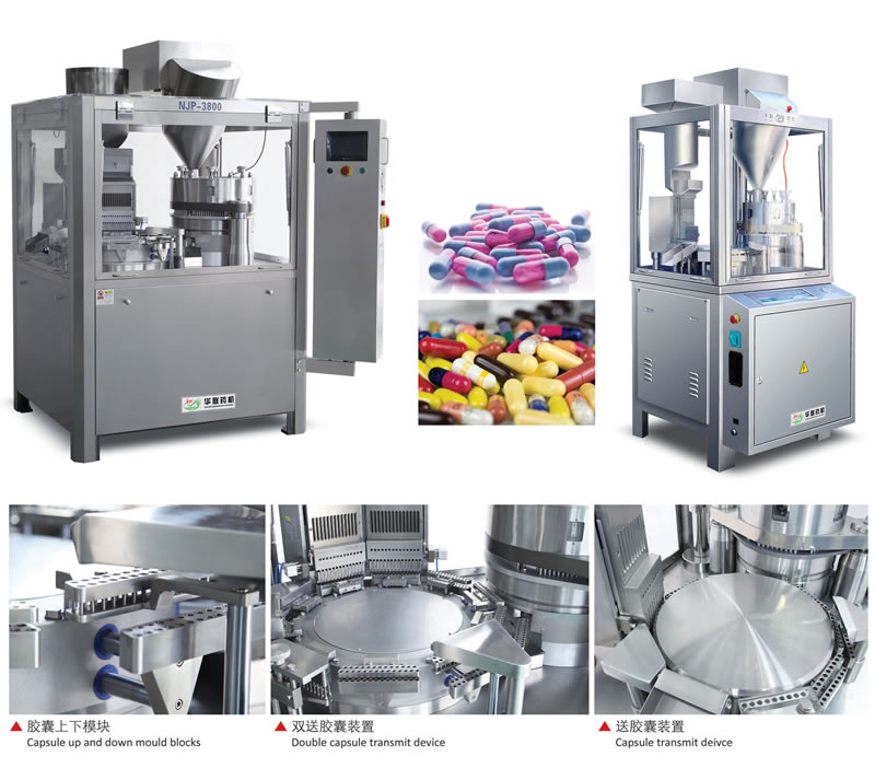NJP series fully automatic capsule filling machine are newly invented machine, which is produced to meet high production capacity requirement on the basis on original NJP series capsule filling machine. These two machines have dual capsule turn around device, and dual capsule hole moulds. It can increase the production capacity without increase operator and space.